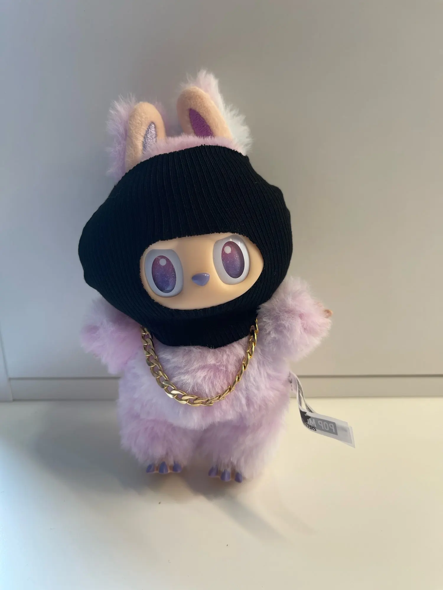 Give your collectible figure a bold streetwear edge with this single-hole ski mask and gold chain combo. The mask is crafted from soft, stretch fabric that slides easily over 15–18 cm figures without scratching, while the lightweight gold-toned chain completes the look with an urban flair. Perfect for displays, cosplay setups, or themed photography.